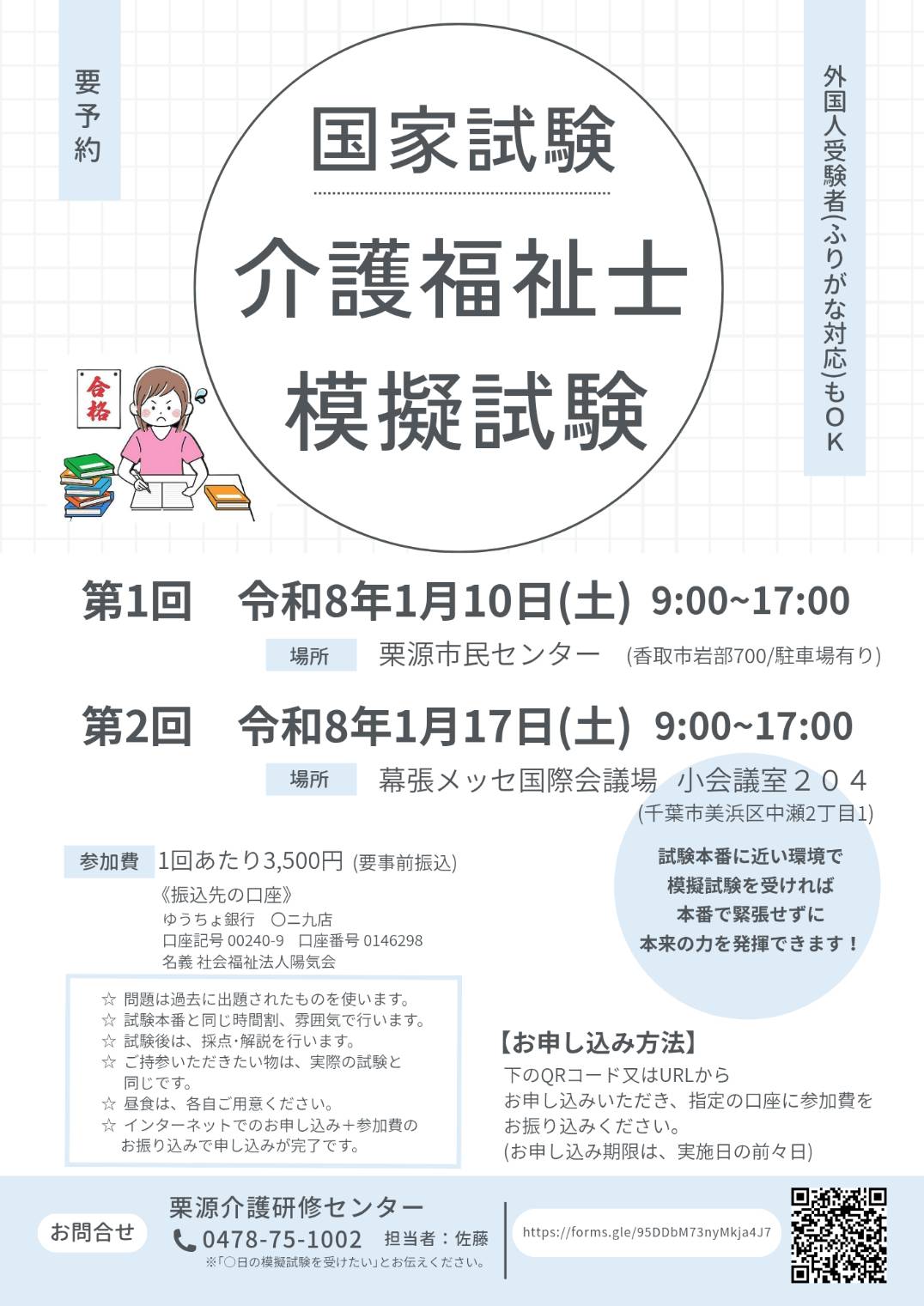 今年度、国家試験介護福祉士を受験される方を対象に模擬試験を実施します。