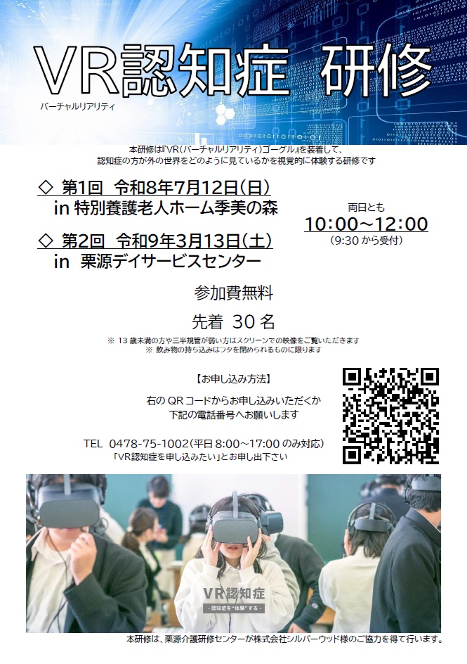 『VR認知症研修』は上の写真のとおり、VRゴーグルをご装着いただいて、認知症の方が見ている世界を視覚的に体験する新しい形の体験型研修です。